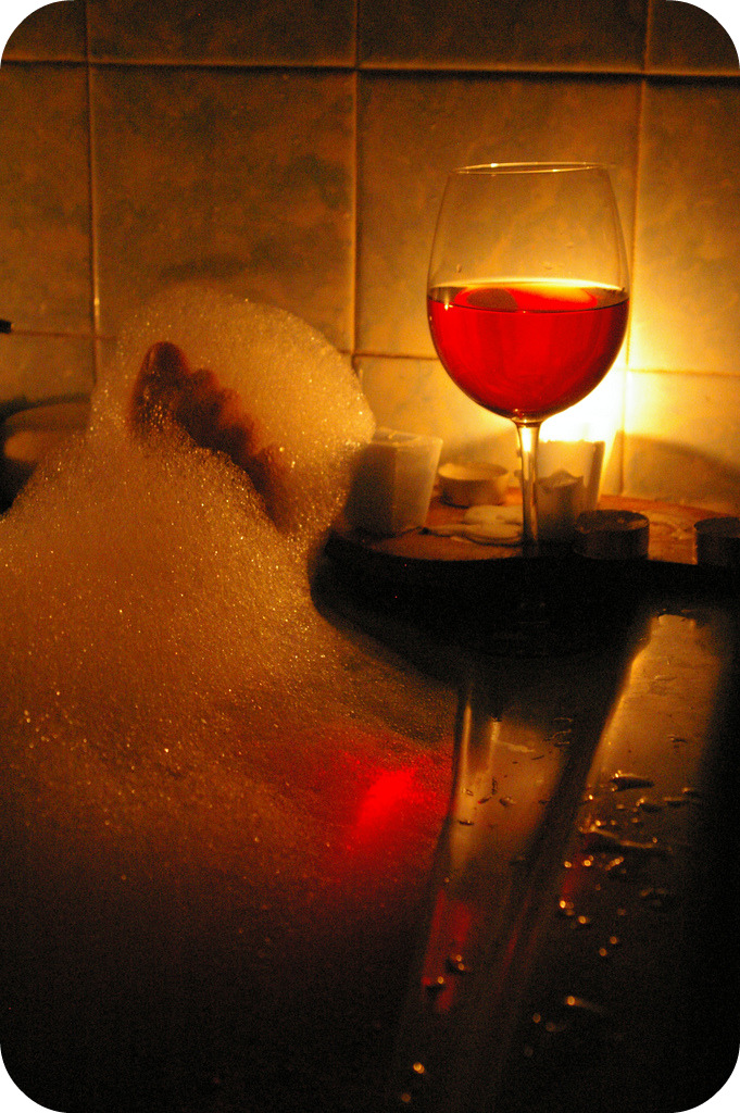 een goed glas wijn in bad
