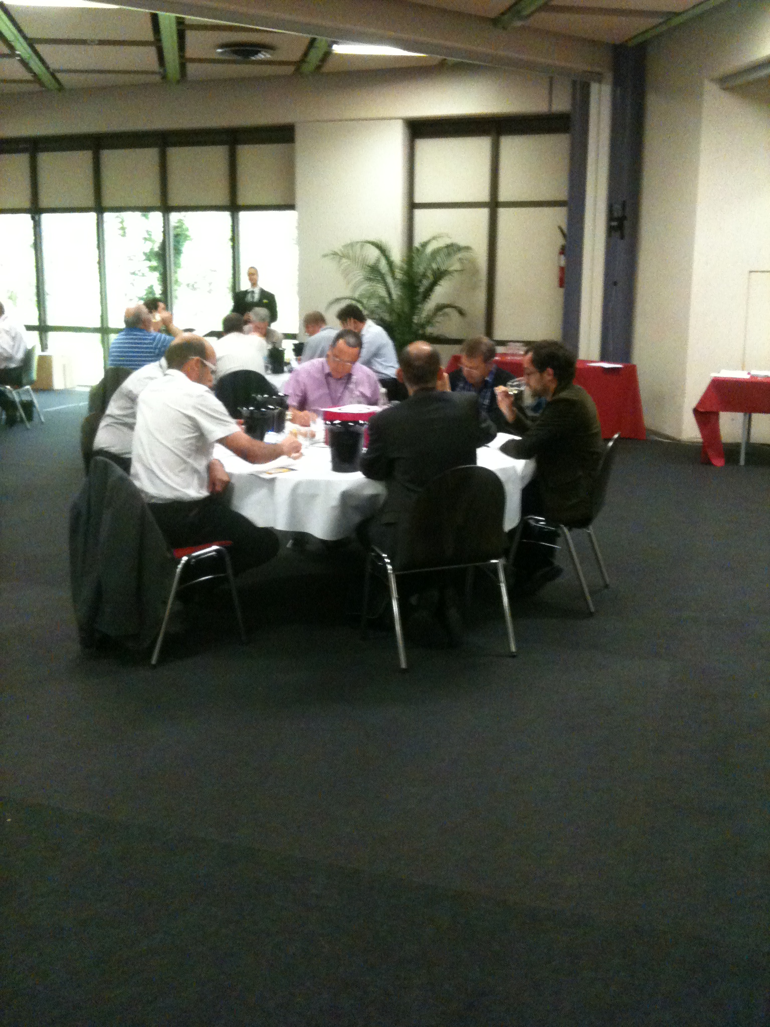 Maar bovenal was er de ongelooflijke kameraadschap tussen ons. Mijn Spaanse vriend bracht zijn Navarra wijnen mee om te laten proeven (lovely Graciano), vanuit Hongarije werden er flessen ontkurkt, een heerlijke trockenbeerenauslese uit het new Yorkse Finger Lakes bezorgde ons zoete dromen… En ik, ik gooide een stok in het hoenderhok door mijn Duiste collega’s te verslaan in hun eigen gebied. De Wagner Stempel Riesling die ik mee had genomen (in magnum) bracht stilte van verbazing doorheen de gelederen.
