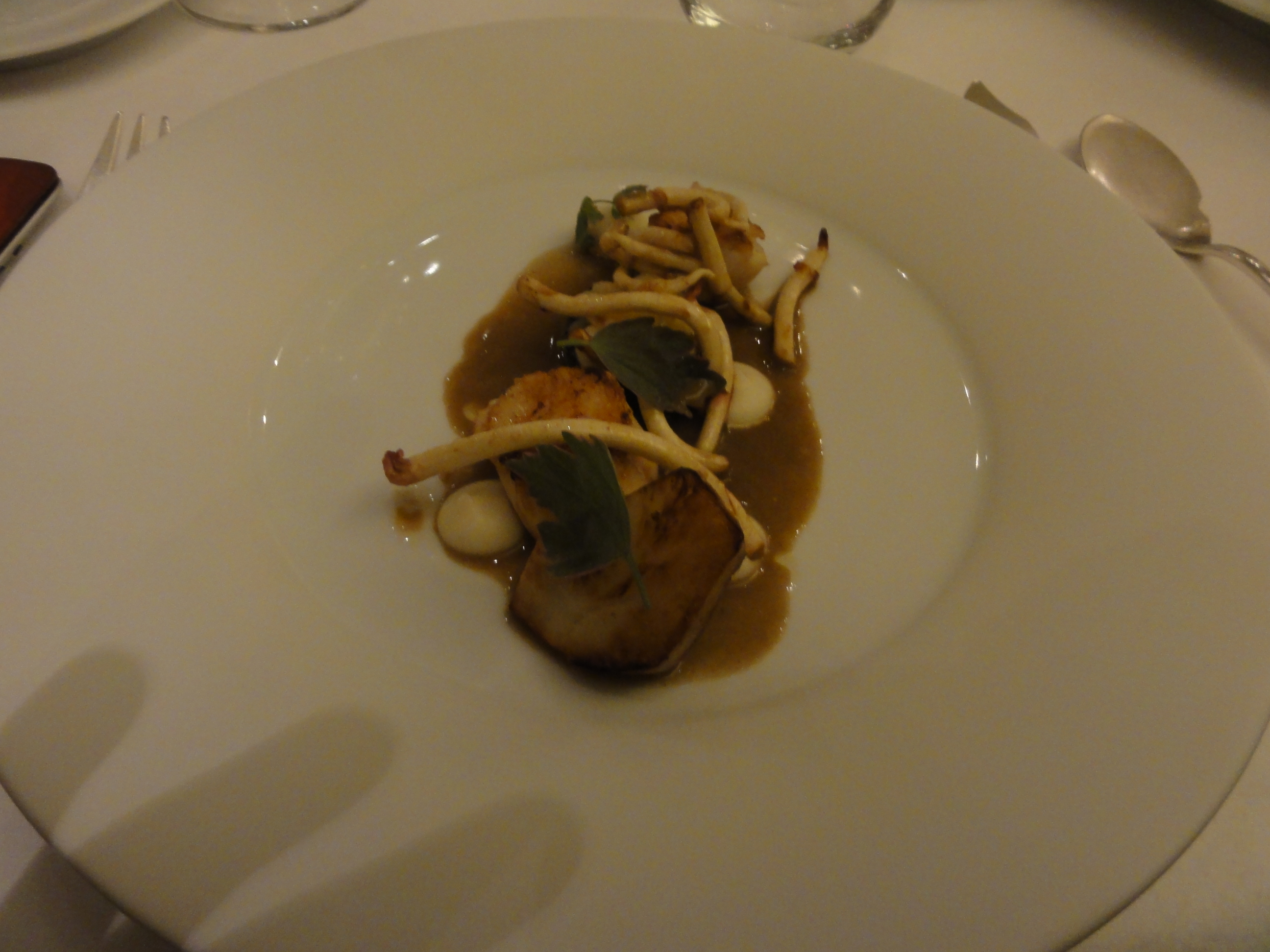 De top van de avond wat mij betreft. Het gerecht vond ik subliem met de combinatie van de hamachi (Australische vis met de structuur van tonijn), het hopus bier en de hopscheuten. Het ei maakte er een smeuĂŻg geheel van.