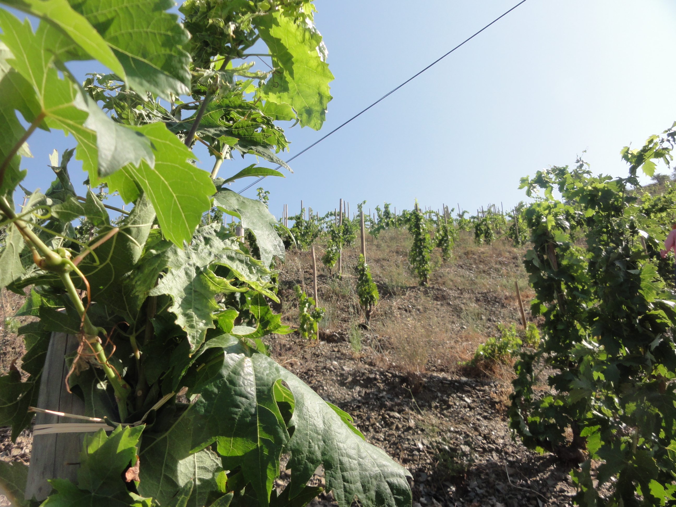 Opzoekwerk leert me dat de ’tijgerhuid bodem’, die men hier ‘Llicorella‘ noemt, bestaat uit rode leisteen met kleine mica (kwarts) deeltjes die de zon sterk weerkaatsen. De bovengrond van verweerde lei en mica is ongeveer 50 cm dik en wanneer deze door regen wegspoelt, blijven de stokken toch in de rotsen verankerd.