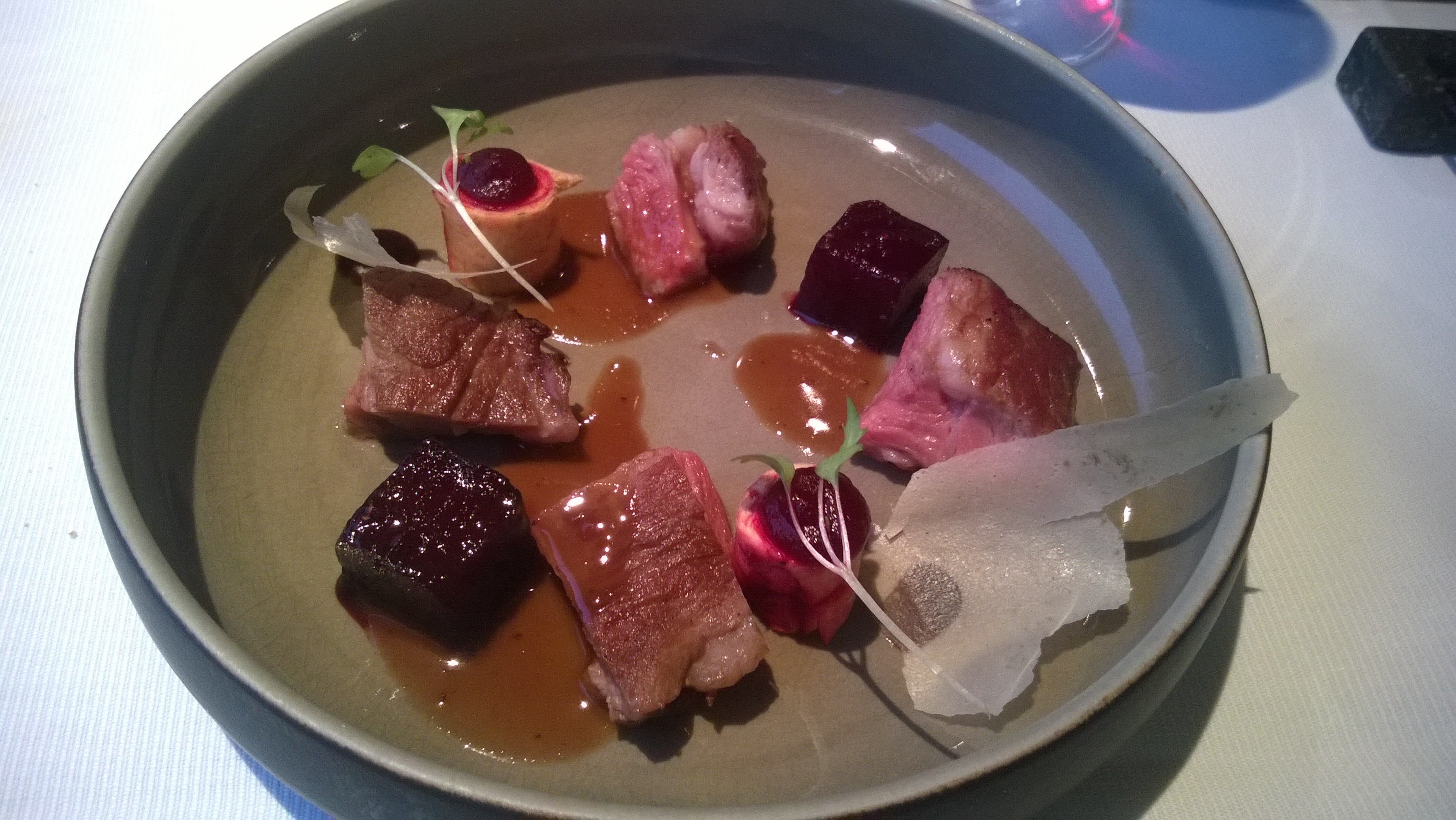 Toch één puntje: wat mij betreft heb ik het nu wel gehad met de rode biet. Oké het past goed, maar het lijkt wel of elke chef het verplicht in zijn menu moet hebben. Wees creatiever creatievelingen ;-).