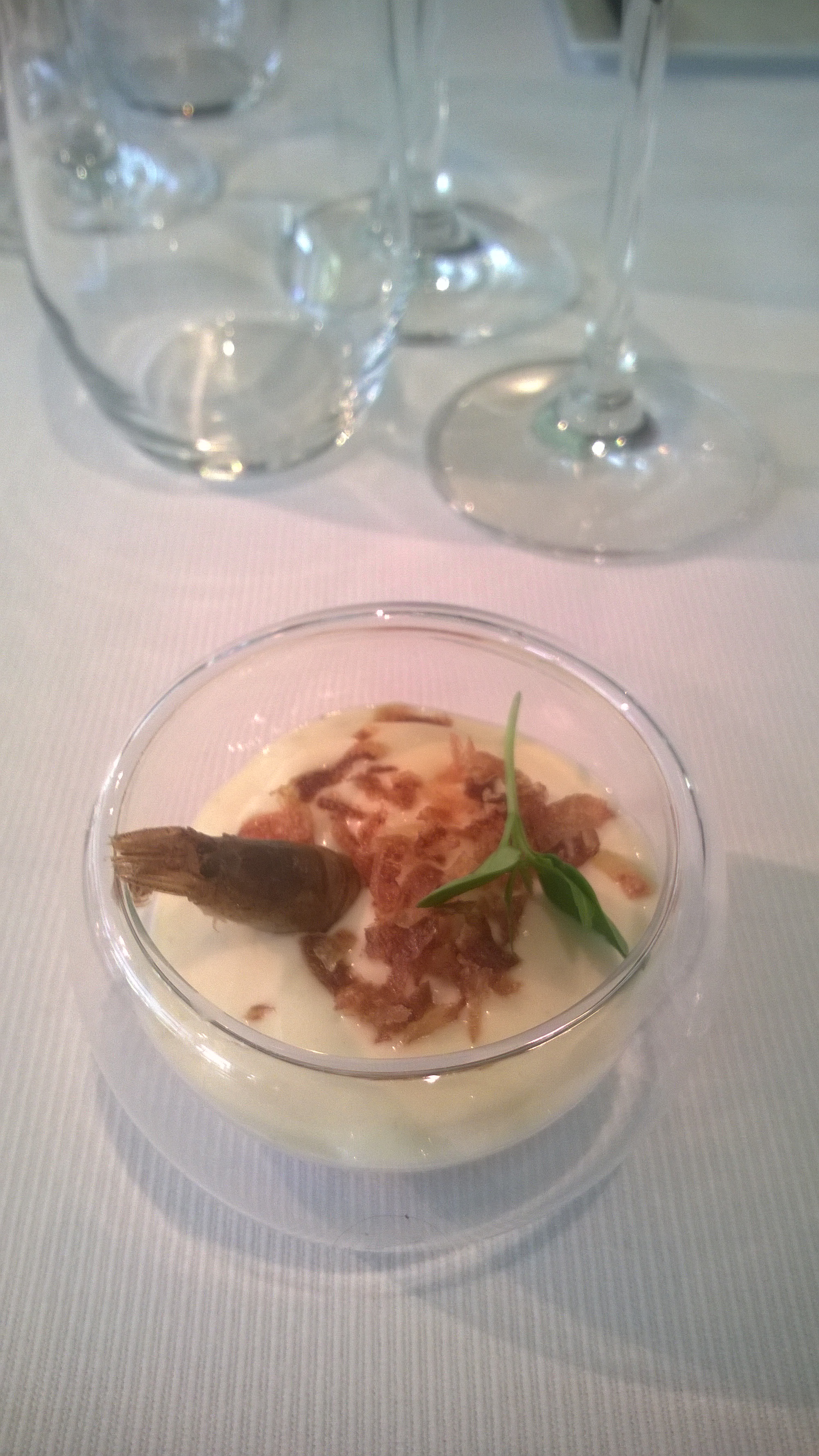 De langoustine is echt wel perfect op smaak. Zelf had ik er iets meer kruiding aangebracht. De toets van verse kaas brengt frisheid in het geheel.