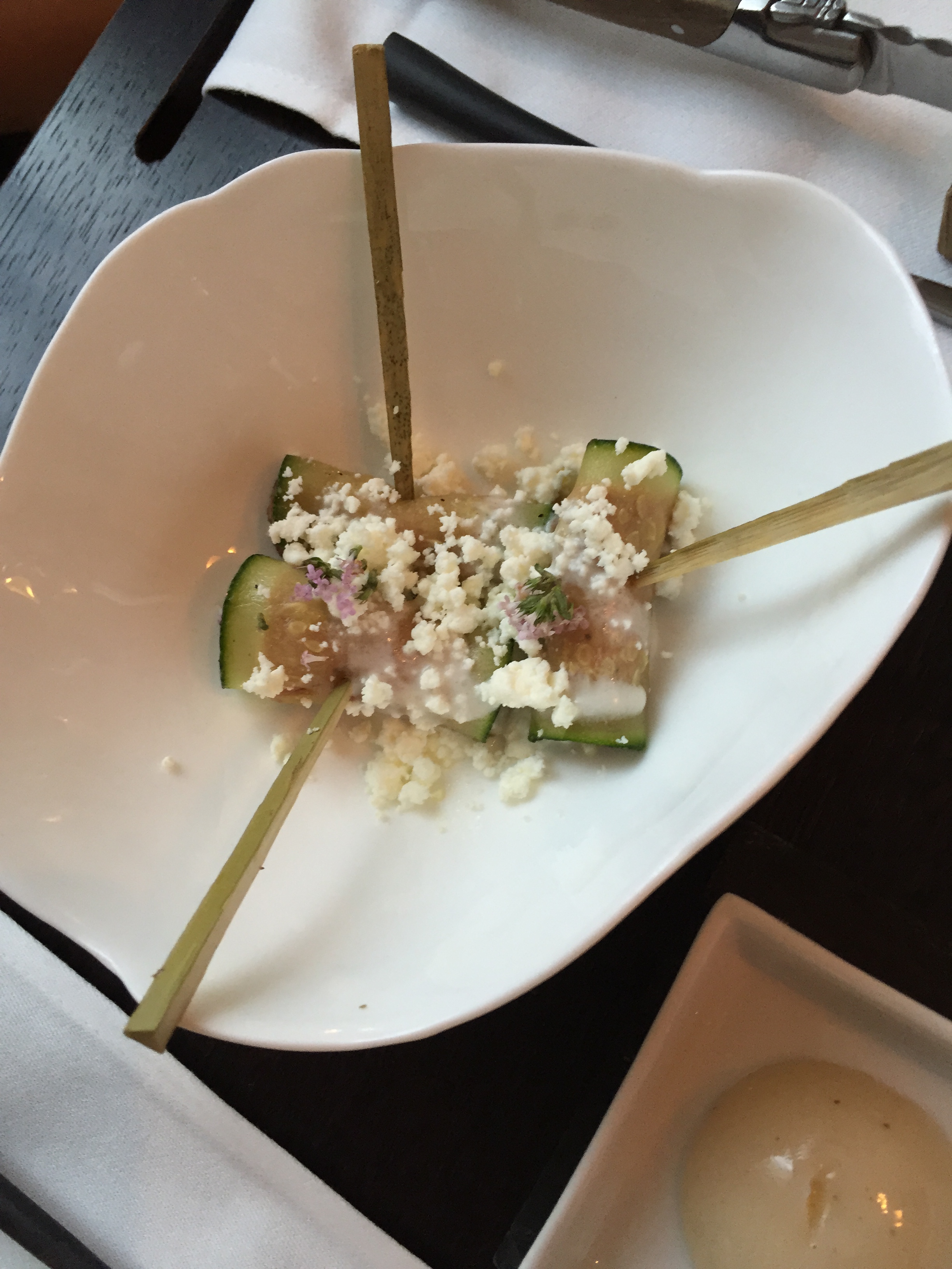 De combinatie met de wijn dan. Dit is een ander verhaal. Afgaande op de menu (hoevekip) verwachtte ik een warm voorgerecht. Doordat dit koud was had ik er beter aangedaan om een wijn met iets meer zuurtjes te kiezen. Geen kwaad woord over de lekkere wijn, maar de combinatie was hierdoor helaas niet perfect.