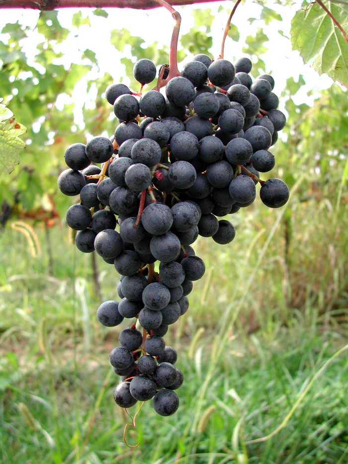 - Druif: elliptisch, dikschillig, diep paars, met rijke anthocyanen