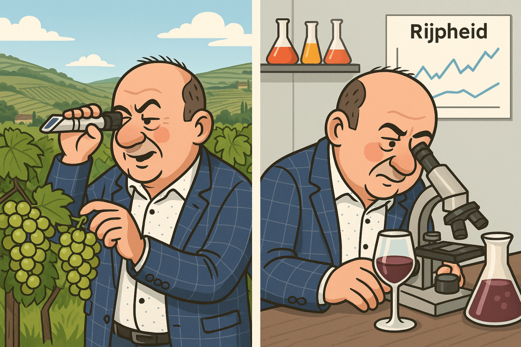 Toch gebeurt rijpheidsbeoordeling vandaag niet meer uitsluitend op buikgevoel. Steeds meer wijnbouwers beschikken over een eigen labo op het domein, waar ze snel en nauwkeurig metingen kunnen uitvoeren. Denk aan mostgewicht, zuurgraad, pH, en voor wie nog een stap verder gaat: de concentratie aan fenolen of aromavoorlopers. Deze gegevens bieden een objectieve basis, zeker bij onzekere weersomstandigheden of in percelen met wisselende rijpingssnelheden. Ze helpen ook om waarnemingen in de wijngaard te bevestigen of bij te sturen.