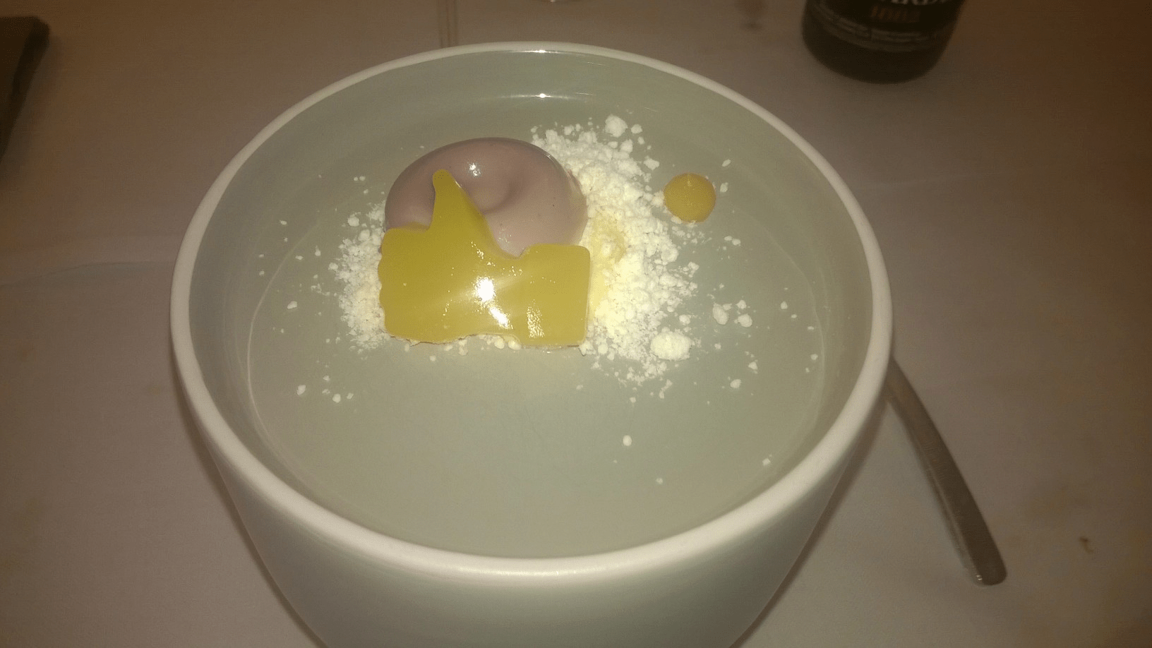 Dit is het minste bordje van de avond en begrijp me aub niet verkeerd het kalfsvlees is sappig en lekker maar de combinatie werkt niet wat mij betreft.