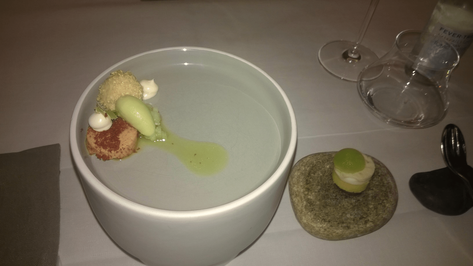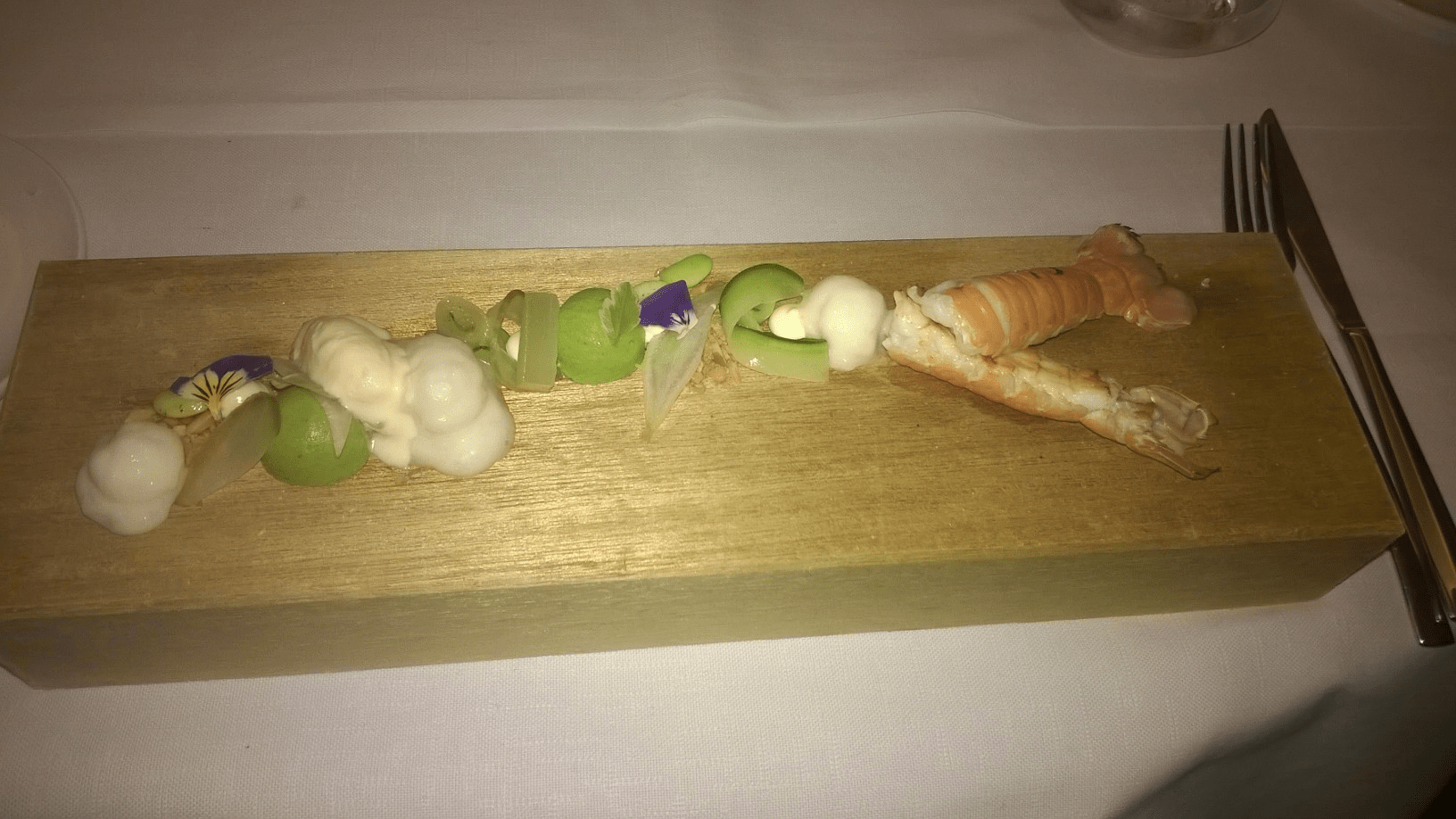 Gang 1 – Langoustine/verjus/gepekeld groen/geitenmelk