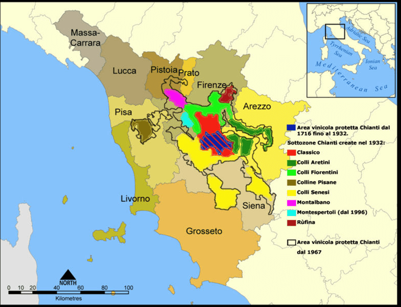- Staan deze wijngaarden in de zone Valdichiana dan heb je pech. Deze worden uitgesloten van de Montepulciano productiezone.